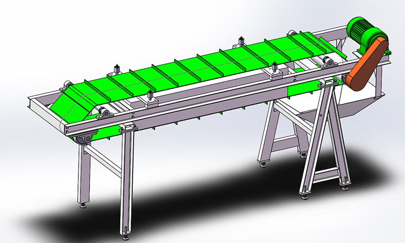 Rubber chip conveyor is used to transport various materials from the shredding line, which has a fully enclosed structure.