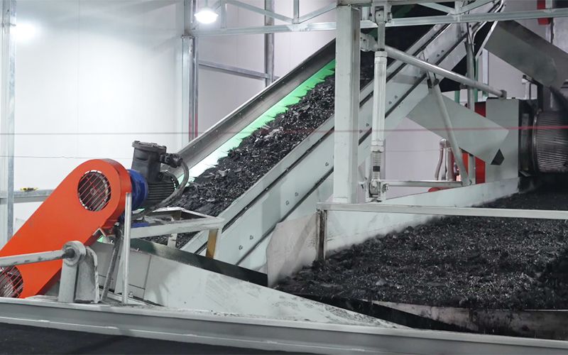 Rubber chip conveyor is used to transport various materials from the shredding line, which has a fully enclosed structure.